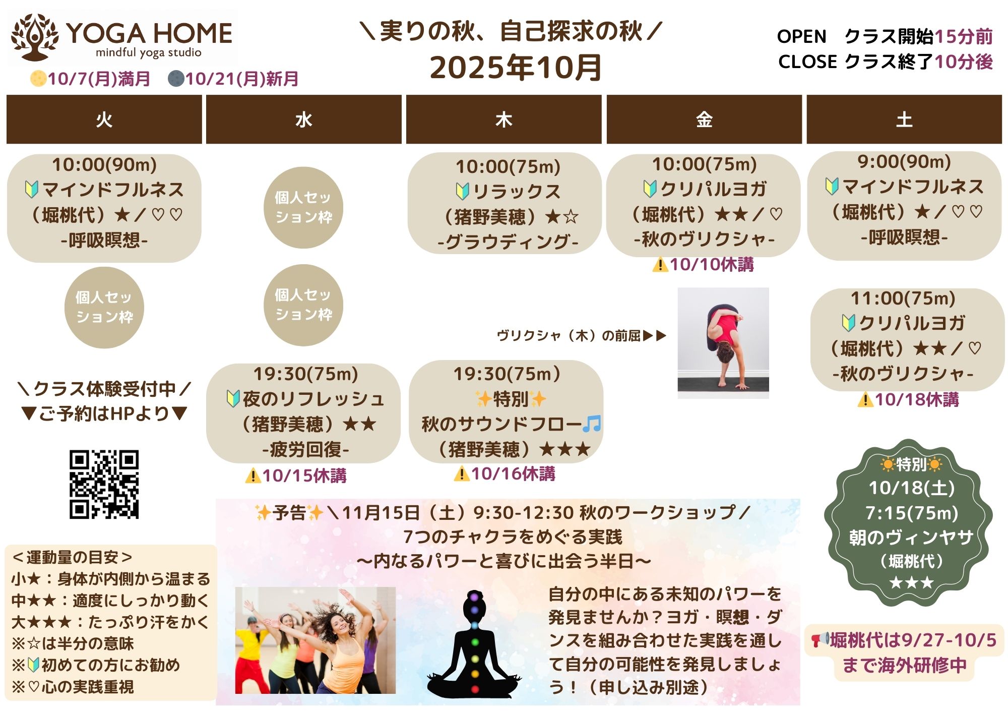 2025年10月スケジュール(ヨガ&マインドフルネス)